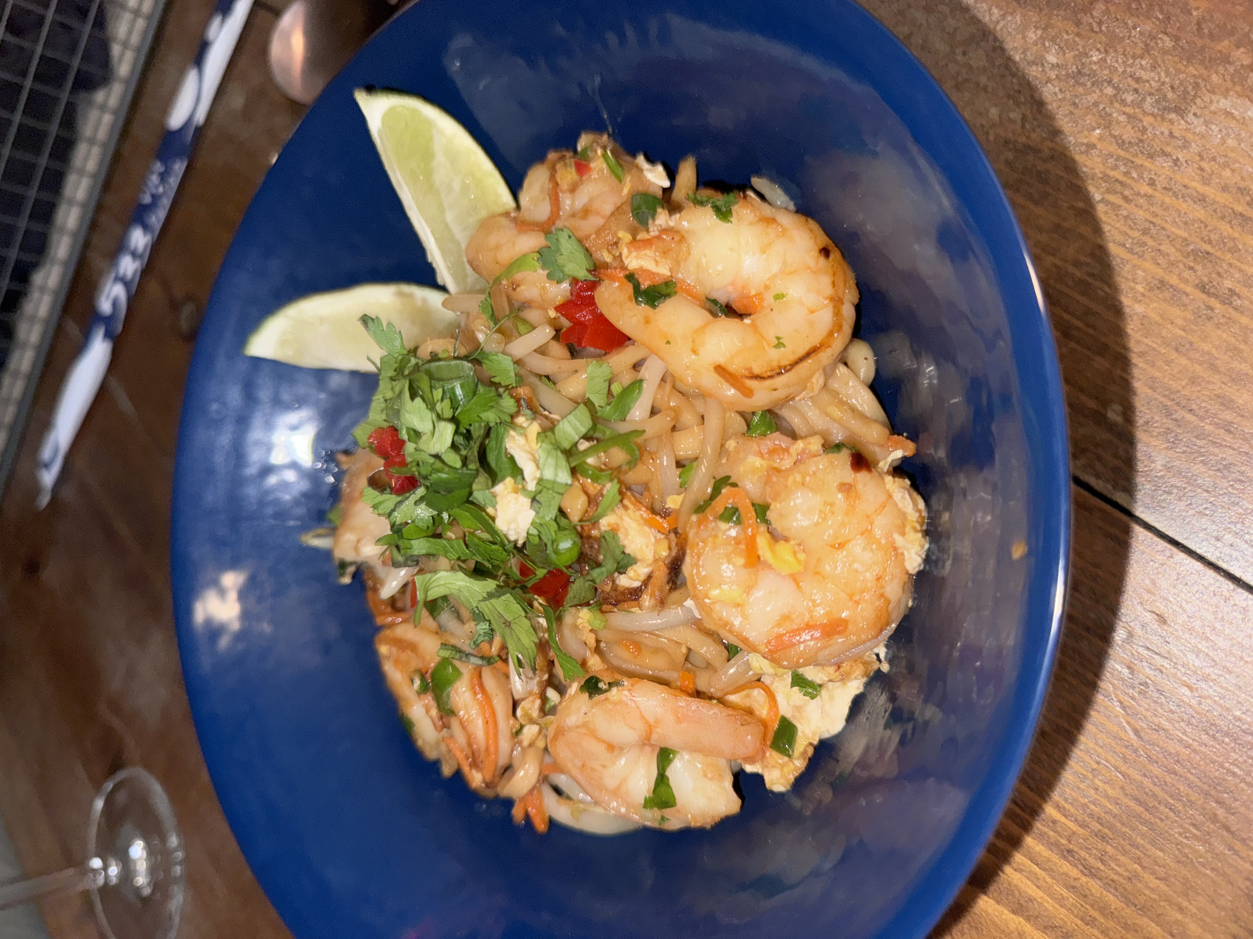 Flat rice noodles, wok fired with our home made tamarind and peanut sauce. Finished with fresh lime and peanuts.